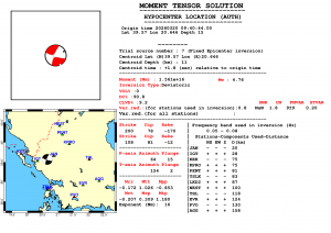 DATE TIME Lat Lon Mw Dep Str1 Dip1 Rake1 Str2 Dip2 Rake2 Waveform FIT Corr/Depth Best Solution